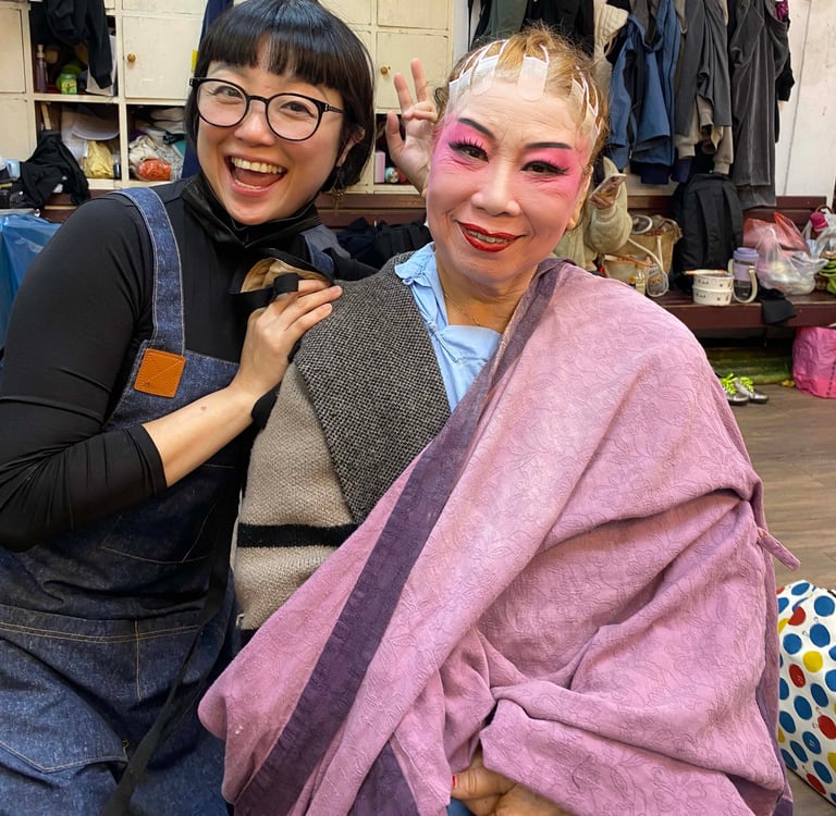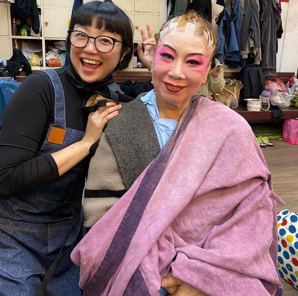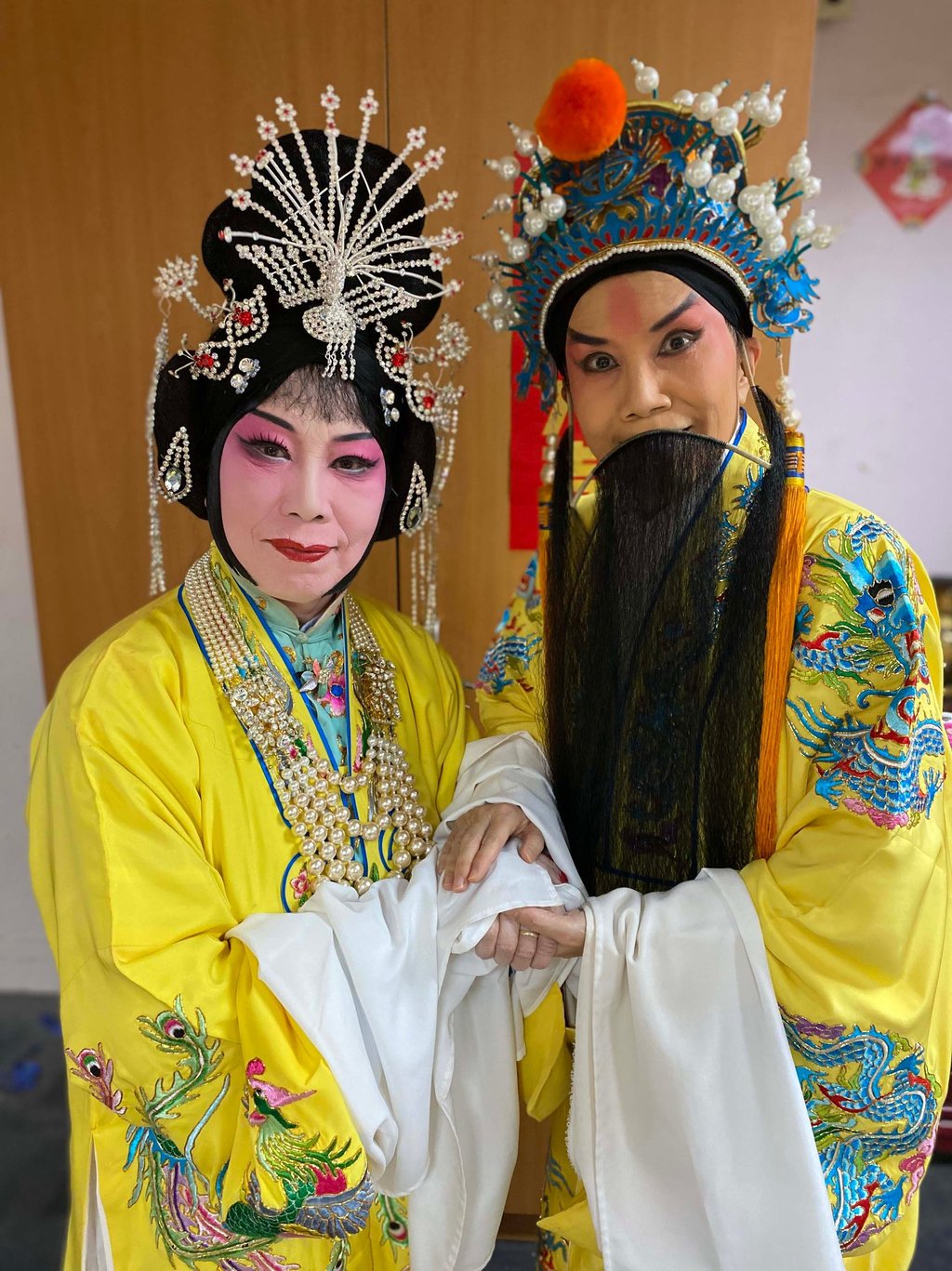 Deman Feng (left) played my Emperor in Rossmore U.S., and invited me to perform in Taiwan. She is also a famous female player of the male character.