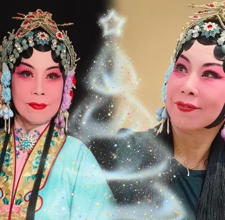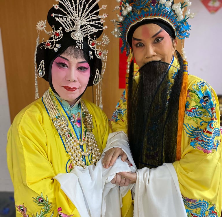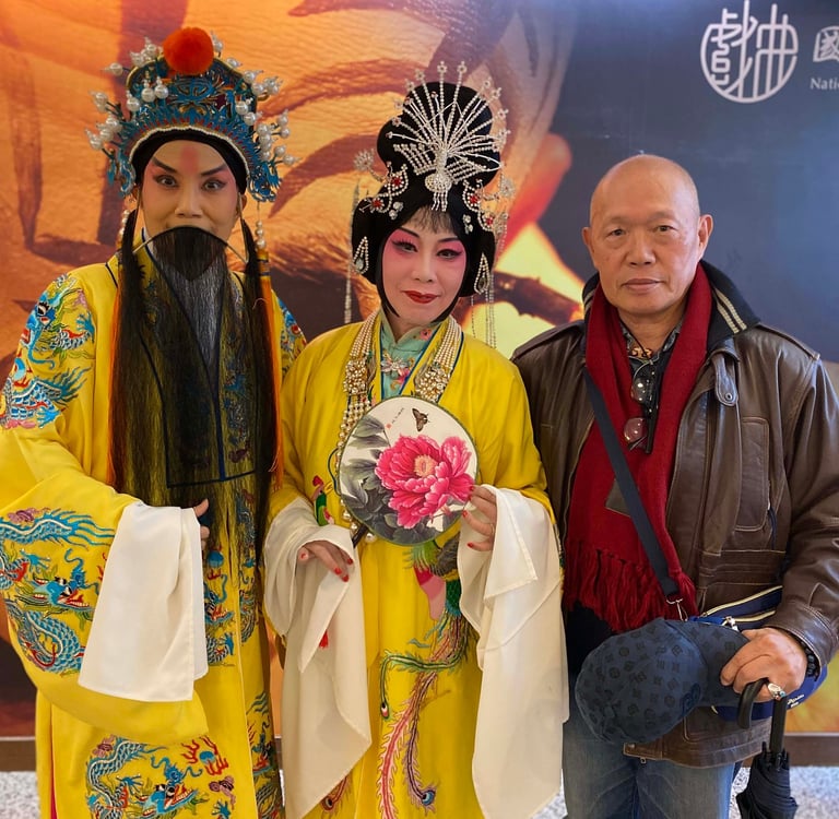 Left: My Tai Wan emperor played by Dee Liu a Peking opera actress and teacher in Taiwan.